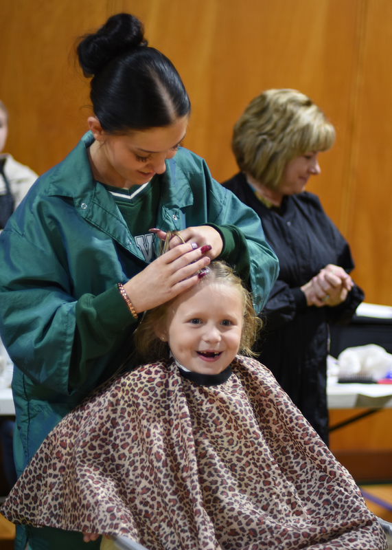 On October 17th, Gansevoort Elementary School hosted a 'Happy Hair Clinic,' featuring MOBOCES Cosmetology seniors and their instructor, Tammy Foster, who provided haircuts and styling services to registered families. Parents were thrilled to see the students in action as they worked on their children's hair.