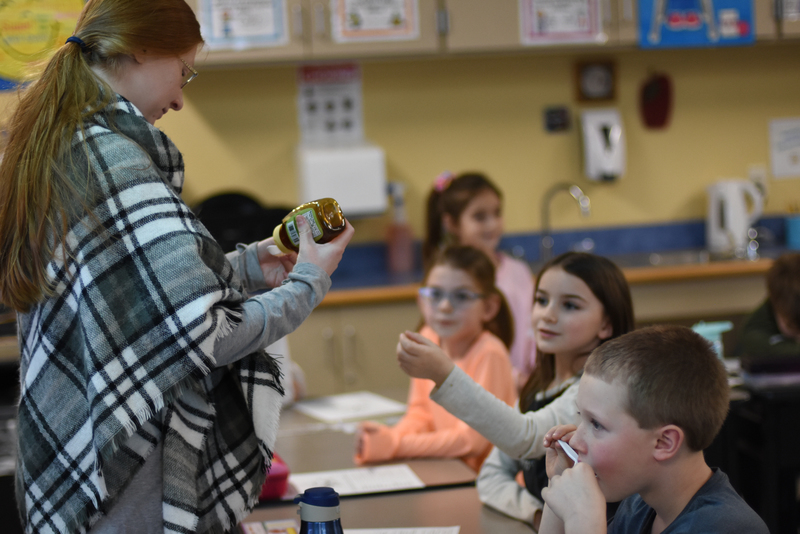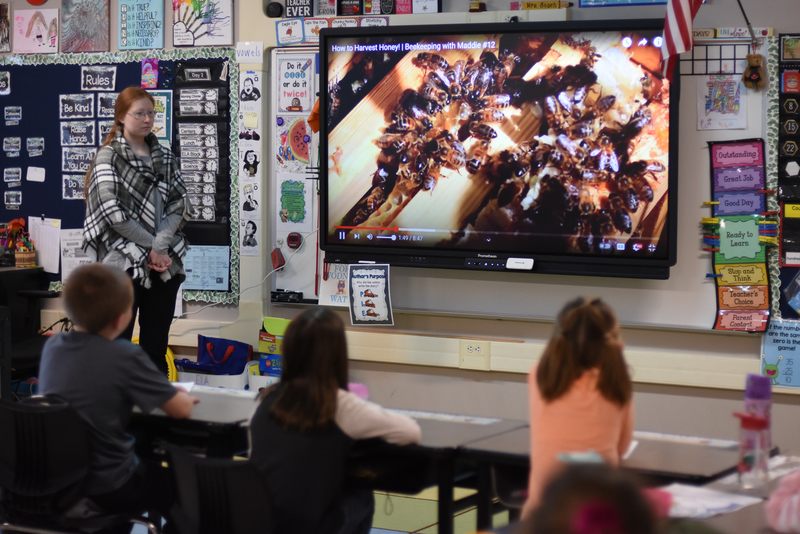 Colleen McEwen, agriculture specialist from Cornell Cooperative Extension of Oneida County visited classrooms at John Joy, on January 25. to do a bee presentation, which goes along with the plants and animals’ science curriculum. Sam Zagurski from Connected Community Schools coordinated the visit and was impressed with the knowledge that students knew about bees. McEwen brought honey that students could sample. Shown here are students in Mrs. Beach’s second grade classroom.