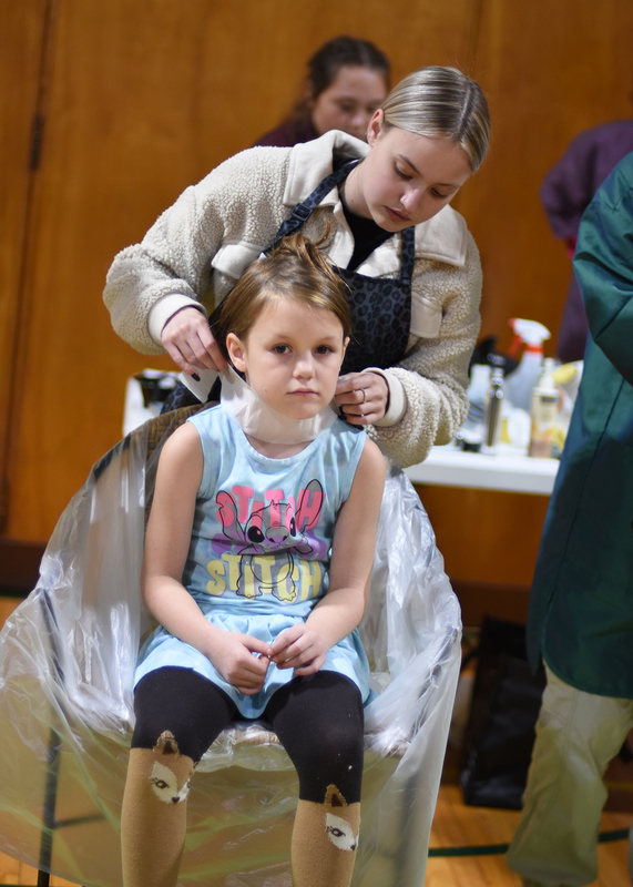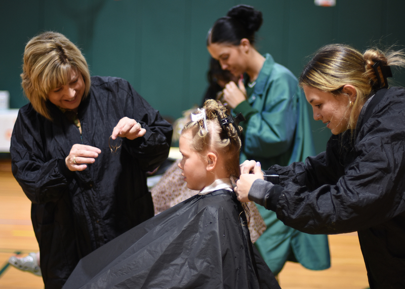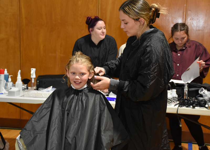 On October 17th, Gansevoort Elementary School hosted a 'Happy Hair Clinic,' featuring MOBOCES Cosmetology seniors and their instructor, Tammy Foster, who provided haircuts and styling services to registered families. Parents were thrilled to see the students in action as they worked on their children's hair.