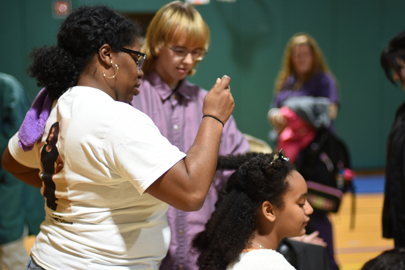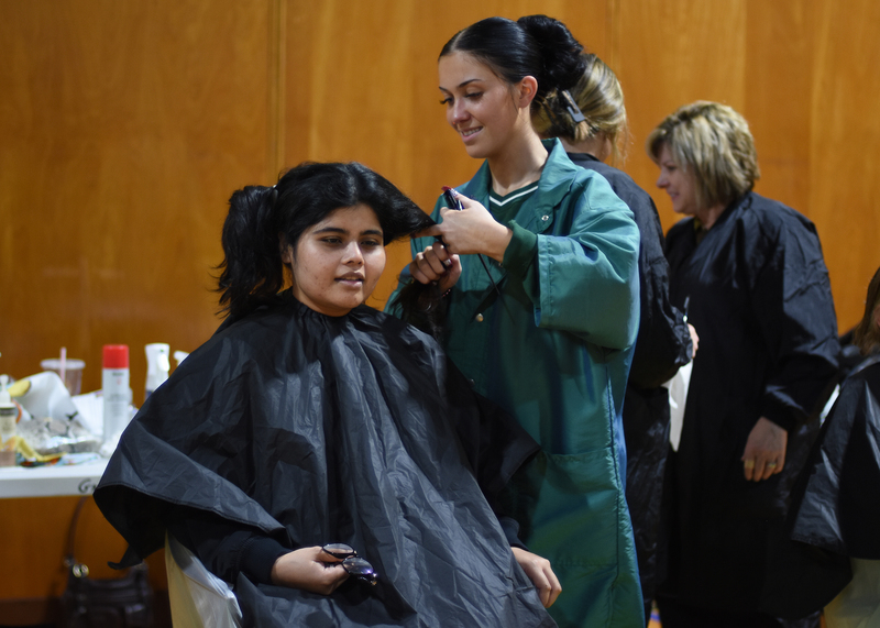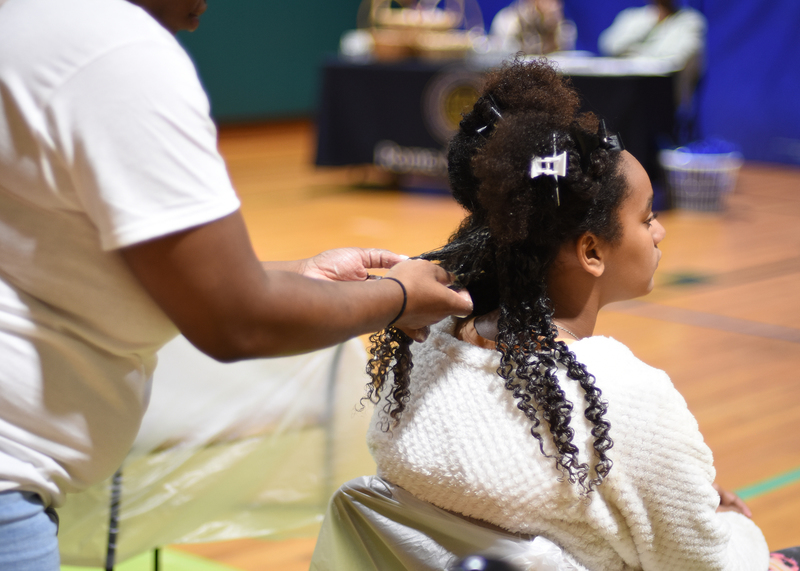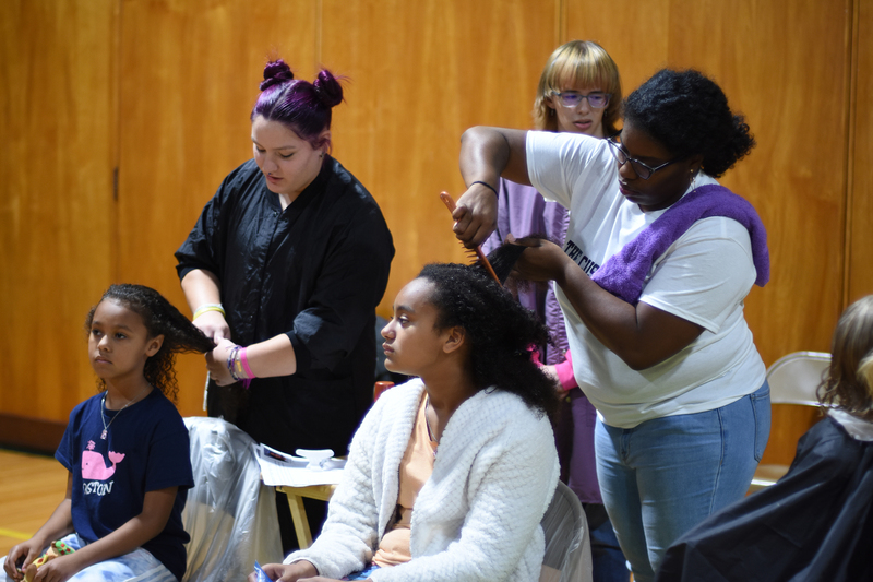 Shakera with the 'Cuse Curlfriend' also contributed by teaching the Cosmetology students about curly hair care techniques.