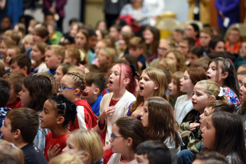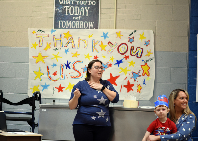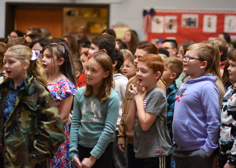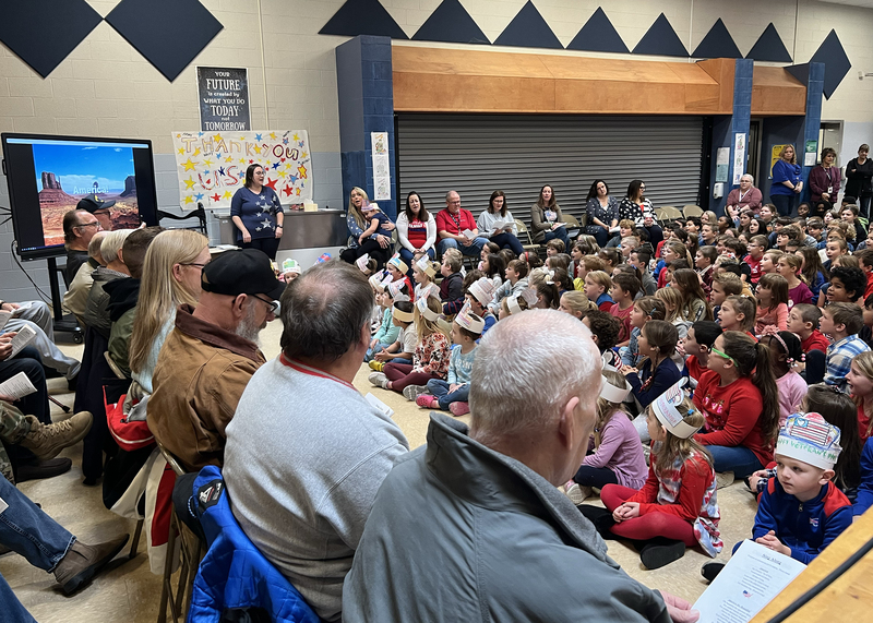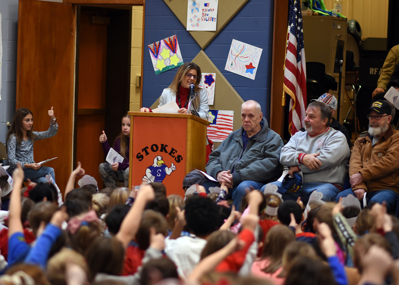 Stokes Elementary School held a Veterans Day ceremony on Monday, November 13, 2023, paying tribute to the families of approximately 50 veterans associated with the school. The event featured patriotic songs, Principal Mrs. Hutchings remarks, and student speakers recognizing veterans from the Army, Navy, Air Force, Marines, Coast Guard, and Space Force.
