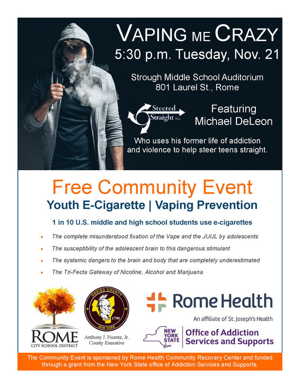 'Vaping me Crazy' FREE Community Event on Tuesday, Nov. 21 at Strough 5:30 p.m.