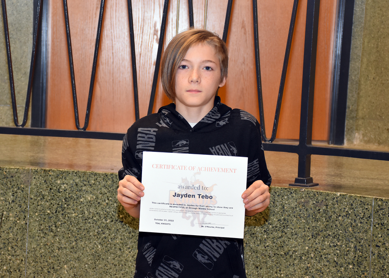 The Strough Middle School PBIS team held an assembly on November 3 to honor 18 students who represent a BRAVE Knight. “The month of October we are honoring students that have shown their teams that they are respectful,” said Principal Tracy O’Rourke.